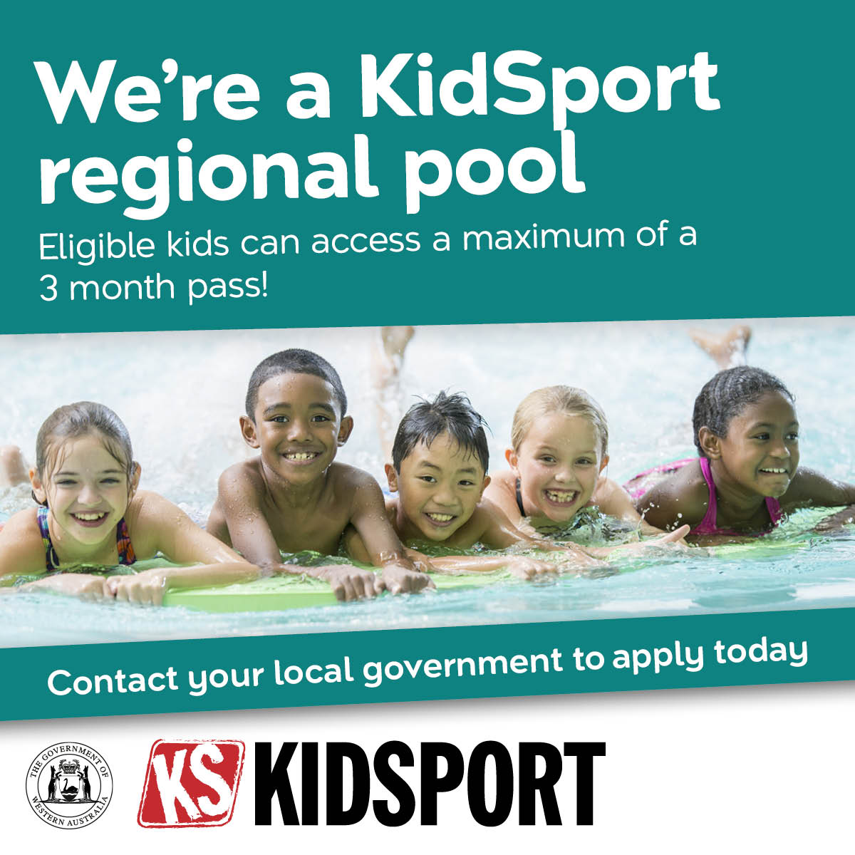 The KidSport Regional Pools Program (KRPP) is being run by the Department of Creative Industries, Tourism and Sport (CITS) to enable eligible Western Australian children aged 5 to 18 years to strengthen their swimming skills by offering a free pool pass to access selected community pools in targeted regional areas.